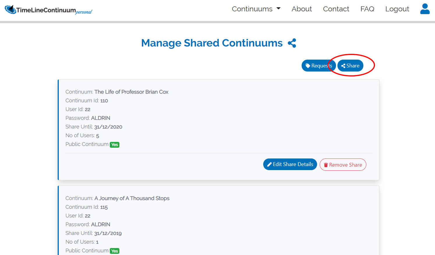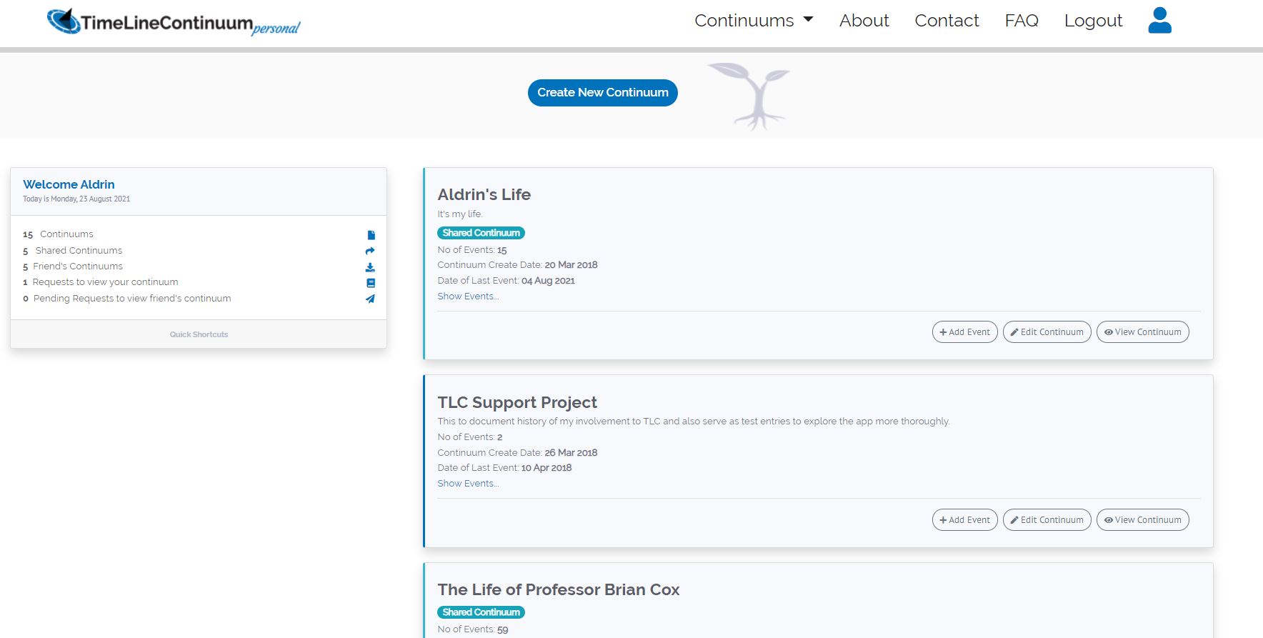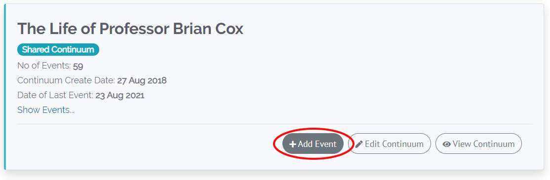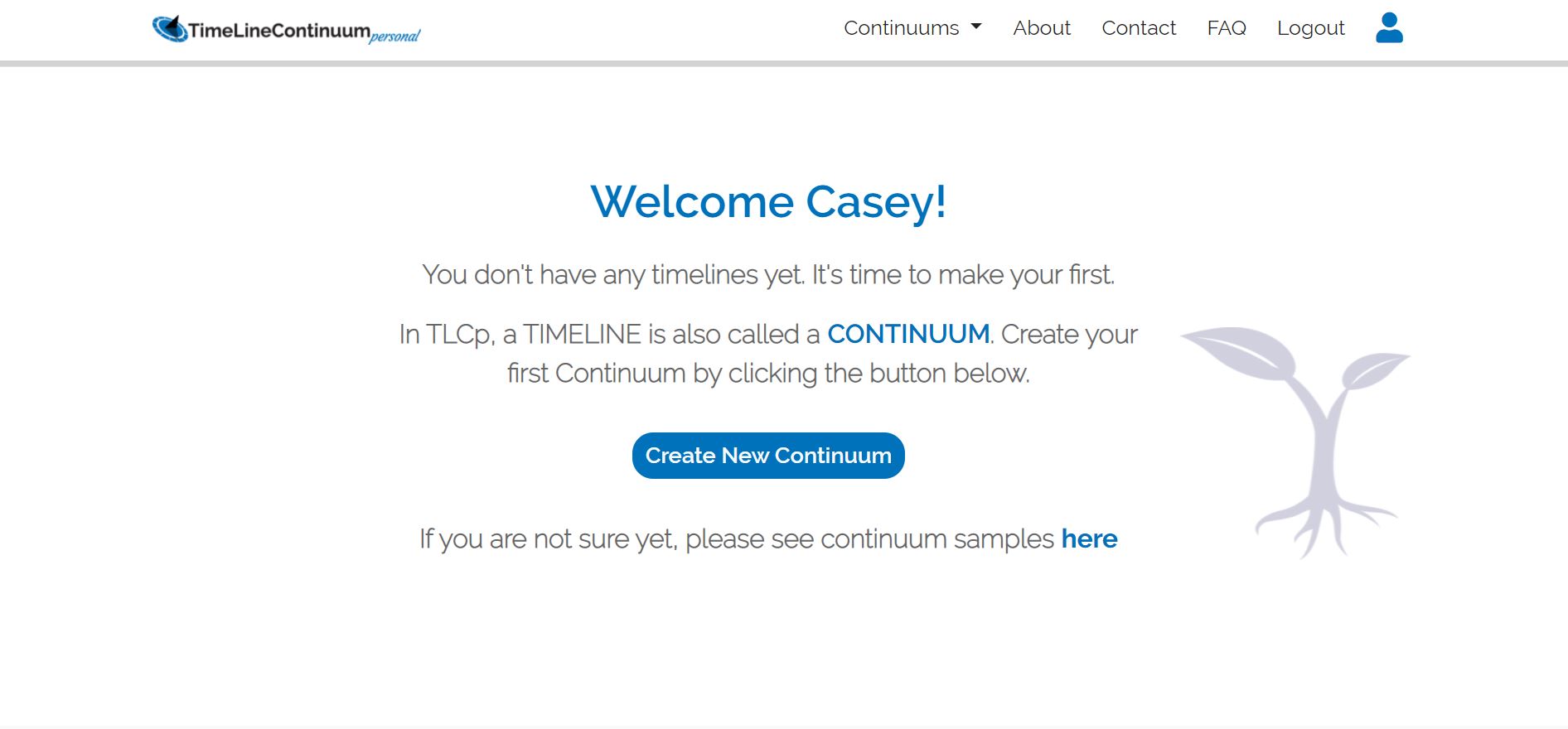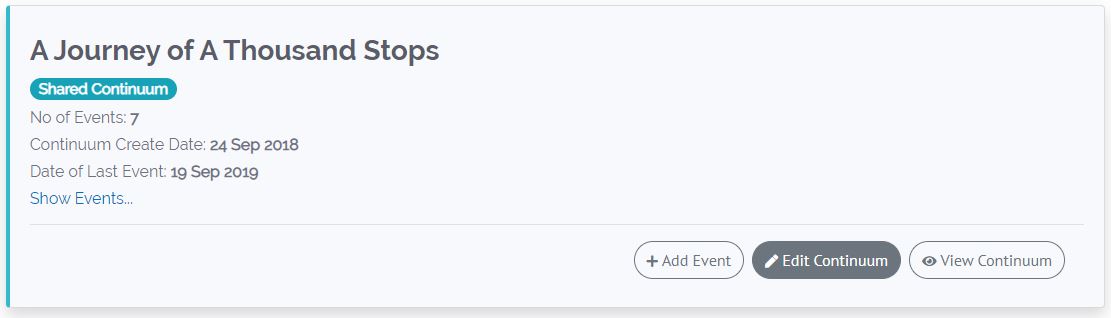 To create your first Timeline or Continuum click on “Create New continuum”.
